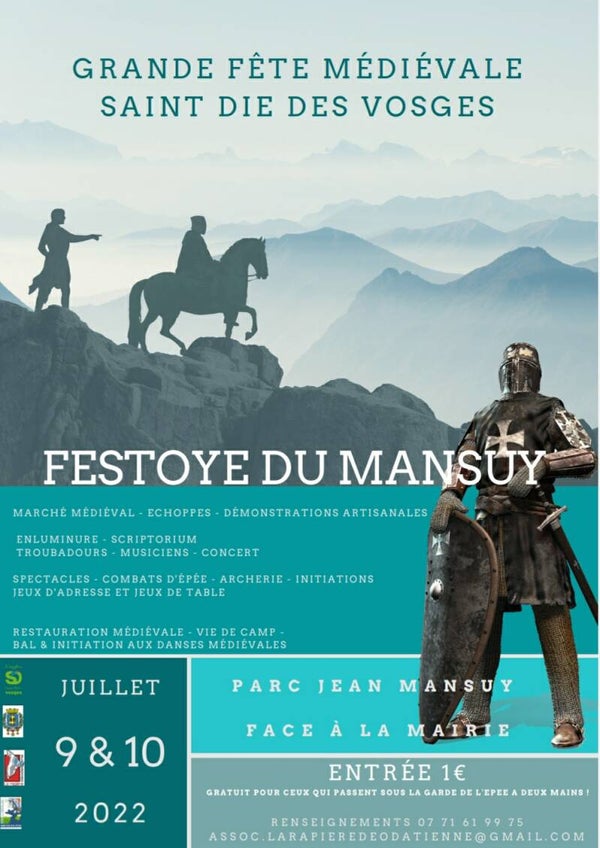C'est ainsi qu'est née la Festoye du Mansuy, une fête médiévale comportant un marché médiéval de qualité ainsi que bon nombre d'animations gratuites pour toutes les familles, afin de permettre à toutes les familles de la Déodatie et du département de nous rejoindre sans que l'aspect financier soit un frein à la culture.