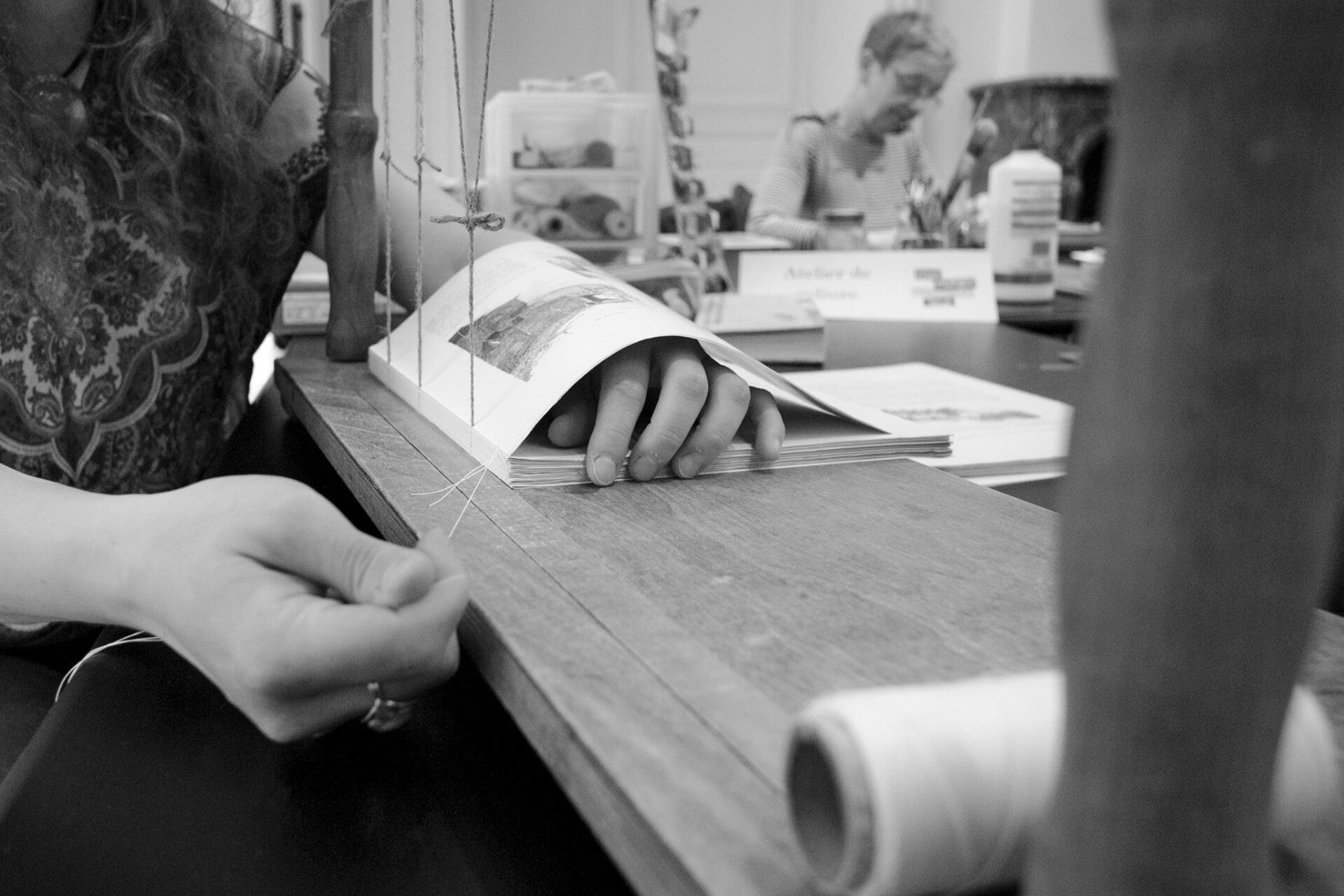 Relieur, doreur, restauratrice d'archives et créatrice autour du livre, Elvina Fonquernie contribue à ce que le temps perde de son emprise sur les documents personnels et patrimoniaux. (@Elvina Fonquernie).