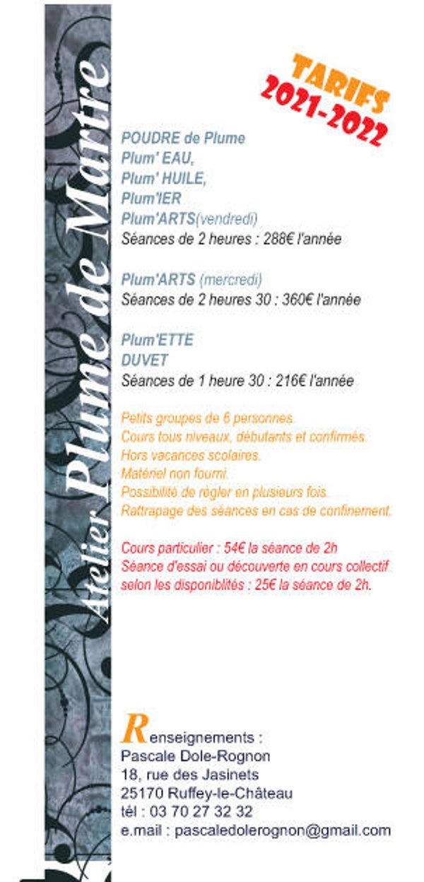 Vous trouverez aussi le cours "POUDRE de plume" pour les pastellistes et les amoureux du dessin et le cours "Plum'IER" pour les calligraphes.