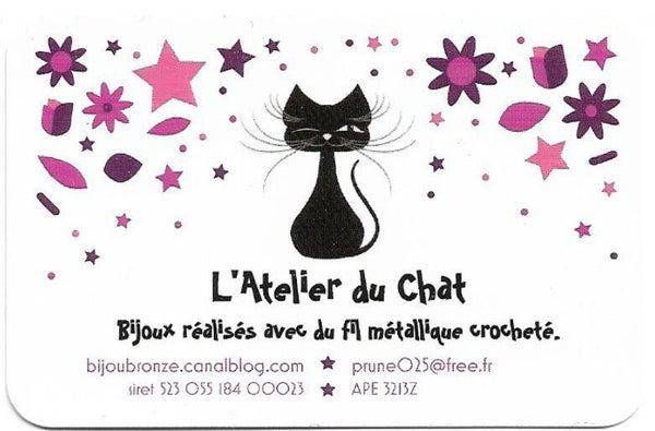 Ma boutique s’appelle « l’Atelier du Chat » car c’est mon chat Gribouille qui surveille attentivement tout ce que créé !!!