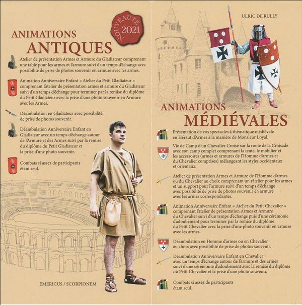 Vous pourrez assister à un atelier pédagogique sur les armes et les armures de l'homme d'armes et du chevalier ainsi qu'à un atelier "entraînement des petits chevaliers" pour les plus jeunes animés par celui-ci.